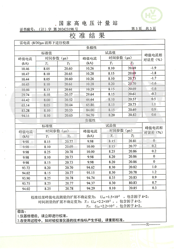 4/10μS沖擊電流幅值 | 100kA±5% |