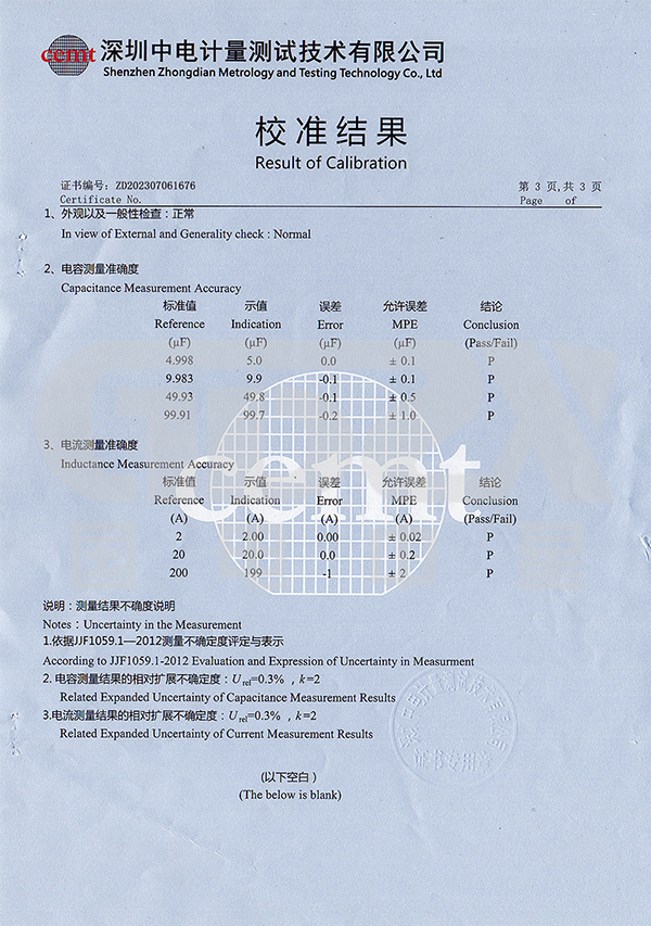 | 三相對(duì)地總電容3μF<CX<90μF 時(shí)測(cè)量精度±5% |